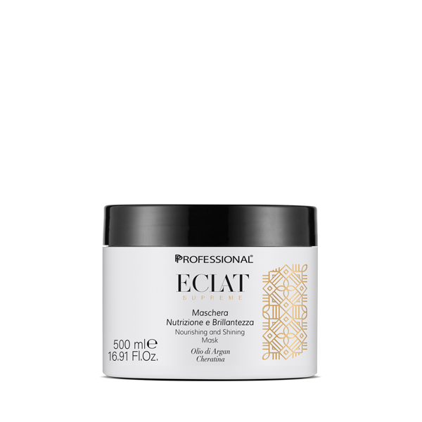 Eclat Supreme maschera nutrizione e brillantezza con Olio di Argan e Cheratina, per tutti i tipi di capelli. Nutre a fondo e aiuta a ristabilire il corretto grado di idratazione della fibra, favorendo morbidezza e setosità inedite.