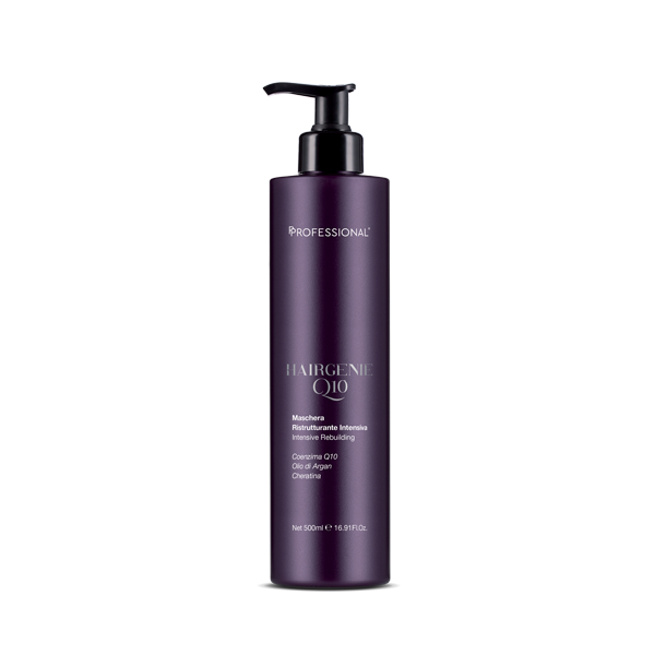 Categories: Hairgenie Q10, TreatmentsA máscara reparadora intensiva Hairgenie Q10 foi especificamente concebida para favorecer a renovação e a firmeza da estrutura externa do cabelo. Ideal para cabelos extremamente danificados, com tratamentos ou estragados, atua sobre o cabelo proporcionando-lhe uma regeneração profunda: coenzima Q10, queratina e óleo de argão são os ativos funcionais da formulação Professional que atuam para melhorar a resistência e a elasticidade do cabelo.